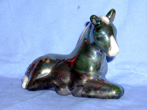 on the hooves, interesting color and flow of glaze, subtle iridescent