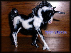 into a fantasy unicorn. Model is painted to a loud black and white