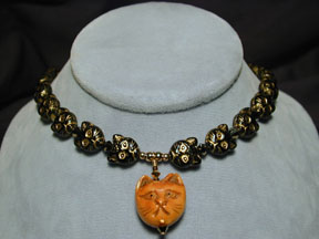 bicones, all which come together to frame a carved bone cat head focal!