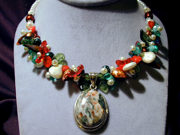 jasper nuggets, intertwined in an eye-candy mix of spiraled art glass