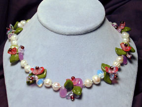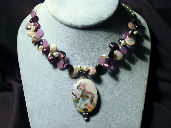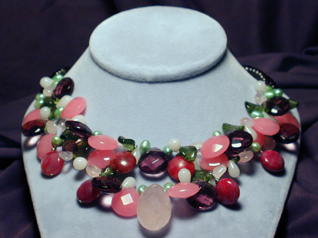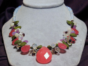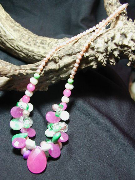 rose quartz and freshwater pearls are highlighted with Czech glass