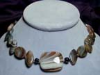 the piece ends with faceted opalite rondelles, sterling silver beads,