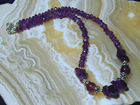 colors. Puffed turquoise ovals lead the eye to two genuine amethyst