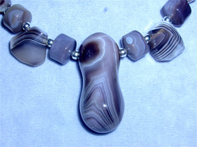 A beautiful and unique Botswana agate peanut is hung