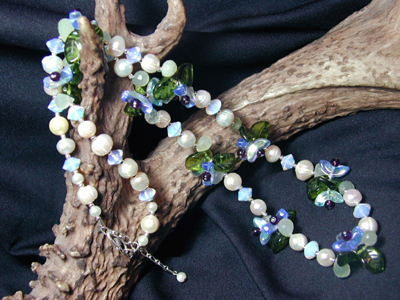 pearls, and color-change Swarovsky crystals, all framing a Bali sterling