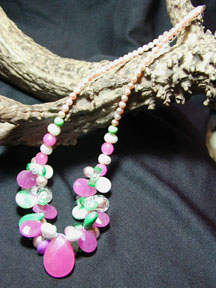 candy jade, rose quartz, and kyanite drops drip between multi-colored