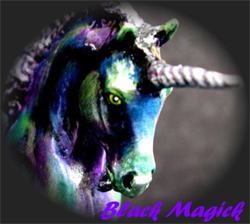 interference media into a fantasy black unicorn. Model displays black
