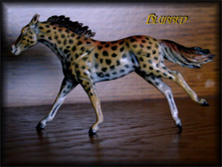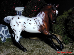 Breyer "Running Foal," customized to a bay leopard Knabstrupper with
